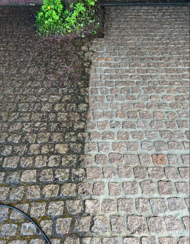 Although the process differs slightly from block paving to pattern imprinted concrete to tarmac etc, the basic principles of driveway cleaning remain the same. We use an advanced cleaning system on all driveways, eliminating and minimising mess. The cleaner ensures the correct flow rate for the specific surface type: